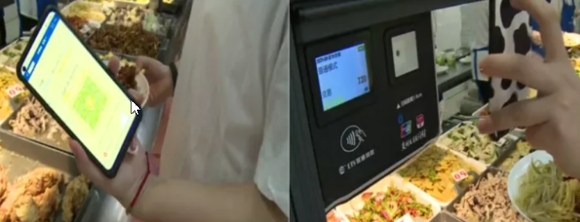 校園食堂,多名學(xué)生正在暢享用安康碼完成午餐支付的便捷。