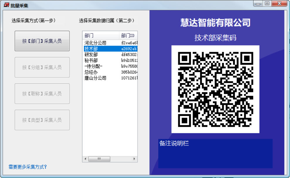 如果需要批量自助采集人員信息到指定【部門(mén)】,可使用此功能。